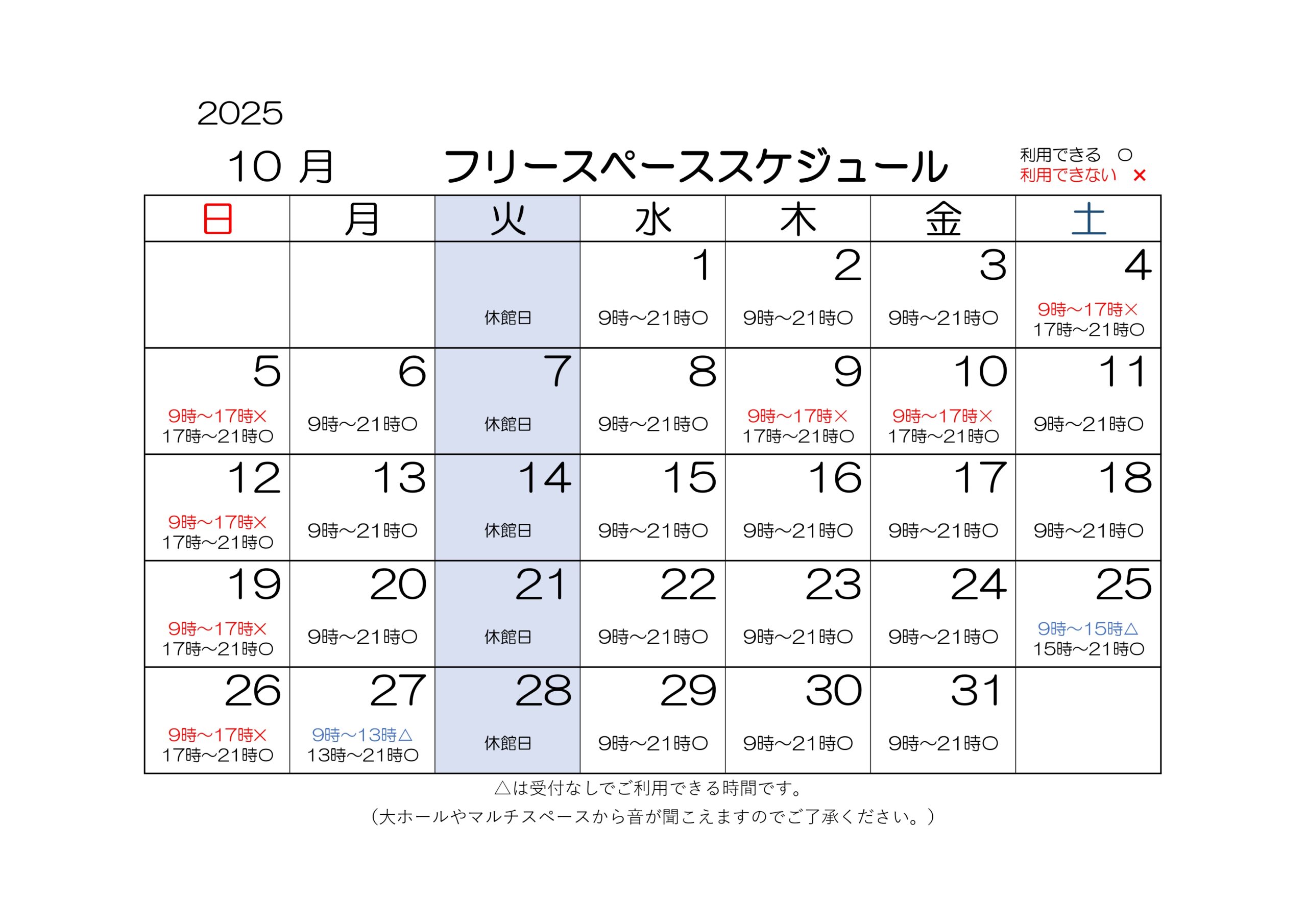 ※赤字の日時はイベント等開催のため利用ができません。 急な日程変更の場合は当館SNS(X、インスタグラム)でお知らせいたします。 受付にてランタンとブランケットをお貸出ししております。 必要な方はお声がけください。 ※数に限りがございます。