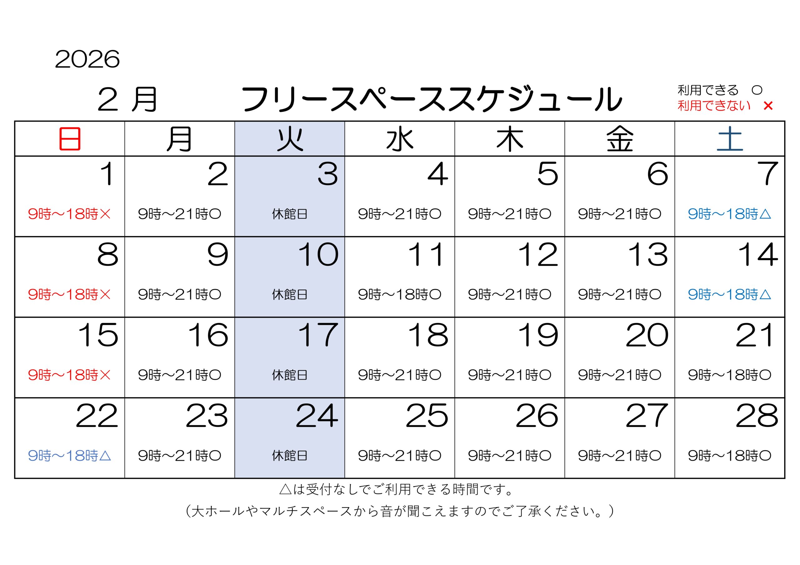 2月のフリースペースの予定