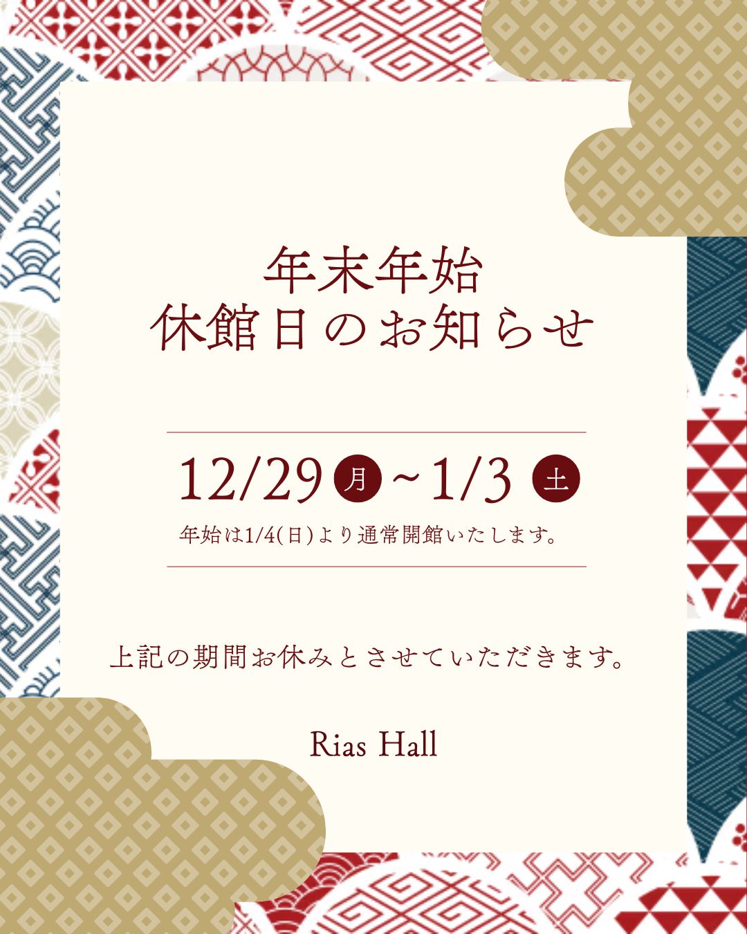 年末年始のお知らせ